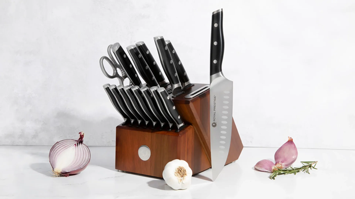 Disfruta del Royal Prestige® Kitchen Knife Set, nuestro clásico paquete de cuchillos rediseñados para tener un agarre profesional, reducir la fatiga y tener un corte más preciso. Inspira a los demás a mostrar su pasión culinaria al hacer cortes que se esperan solo de un chef y ten a la mano todas las herramientas que necesitas para hacer realidad esas recetas de ensueño.